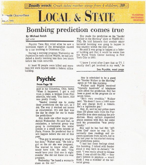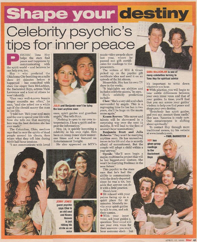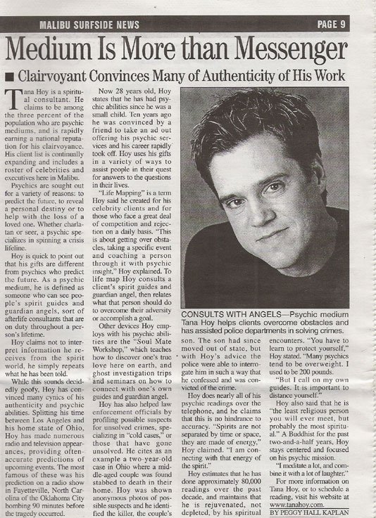 Tana Hoy as seen on ABC, CBS, NBC, Fox, Entertainment Weekly, Psychic Detectives